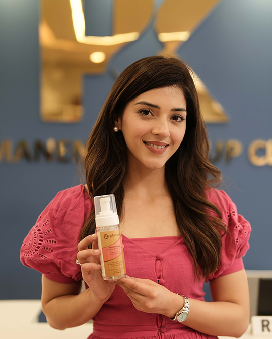 - Take a small amount of the face wash into your palms.
