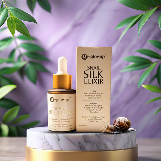 HK Glowup Snail Silk Elixir | Ultimate Hydration & Radiance | Suitable For All Skin Types | Pure Snail Secretion Filtrate | Infused with Pure Snail Secretion, Hyaluronic Acid, Aloe vera & Glycerin | Paraben & Sulphate Free | For Women & Men (30ML)
